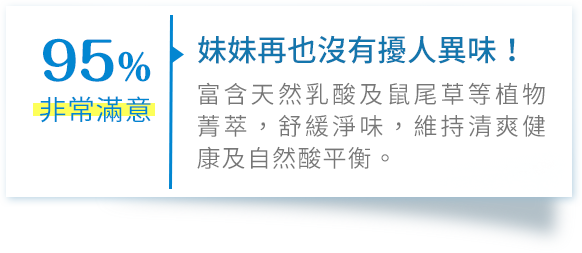 味道淡淡的,洗起來很溫和不會刺激,改善異味的效果很棒,針對搔癢的部分也能改善,再加上成分中的乳酸能同時保養私密肌,增強私密及防禦力,會推薦給身邊的女性朋友。